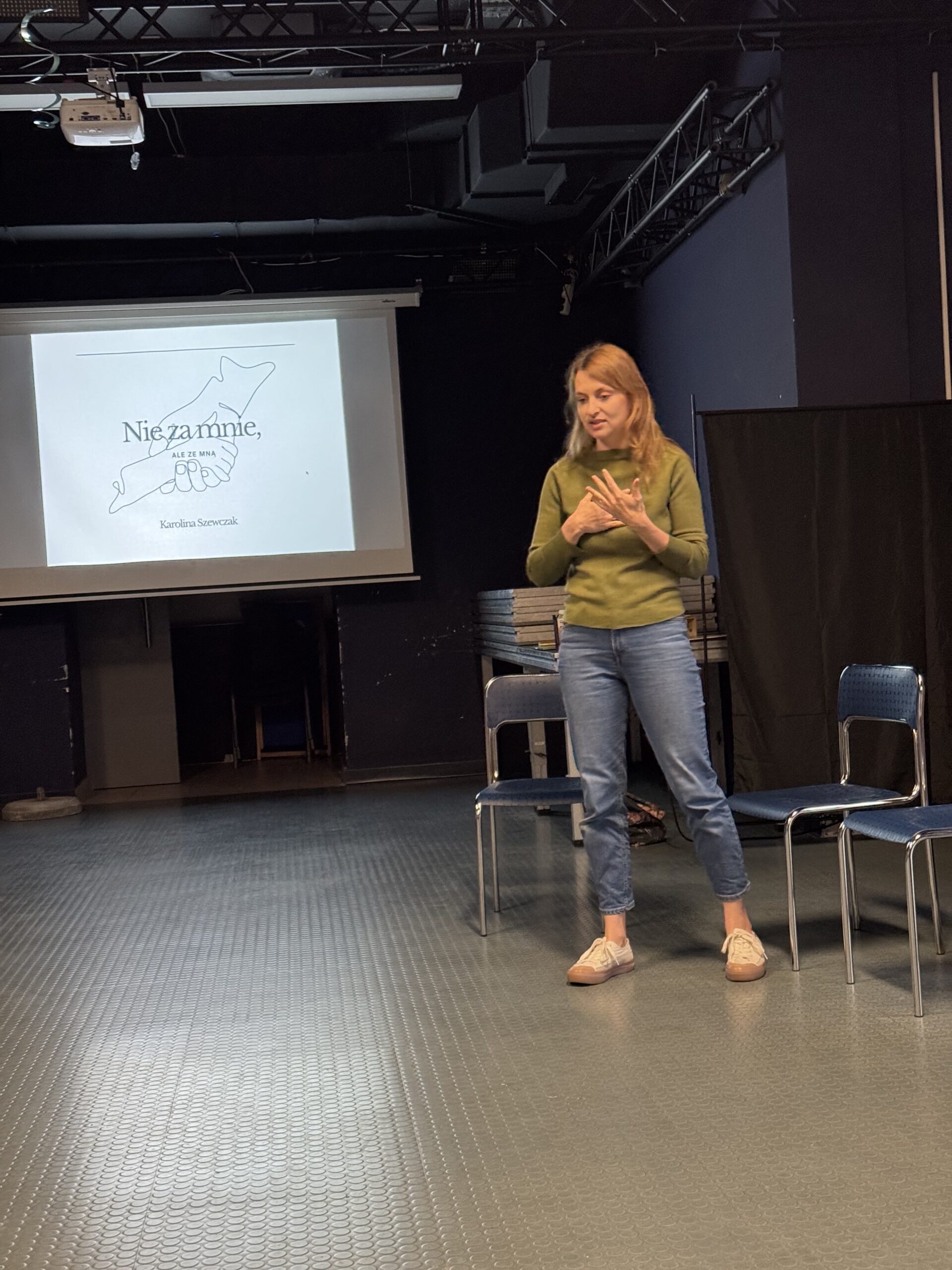 Szkolenie „Nie za mnie, ale ze mną – jak wspierać podmiotowość osób z niepełnosprawnością” poprowadziła Karolina Szewczak – nauczycielka z Zespołu Szkół Specjalnych w Opolu
